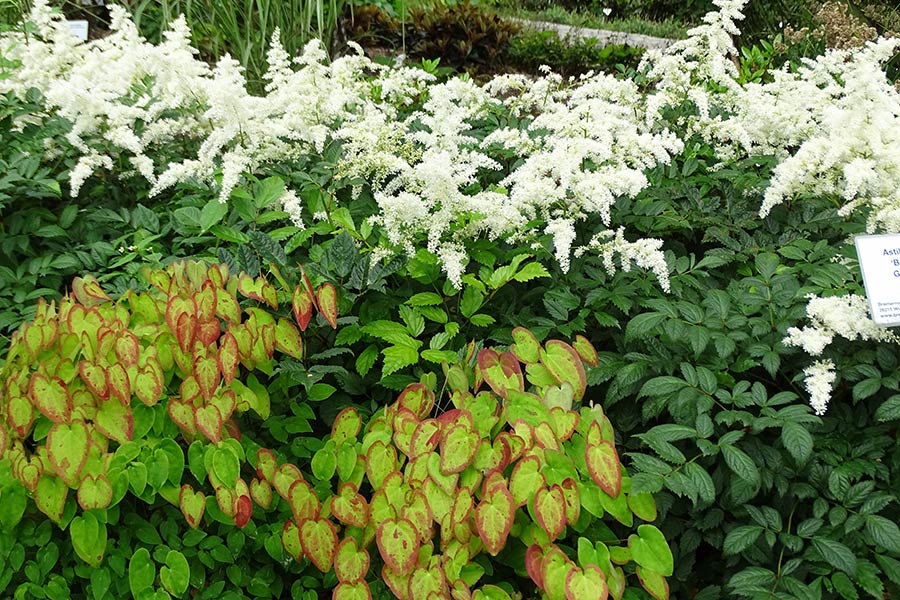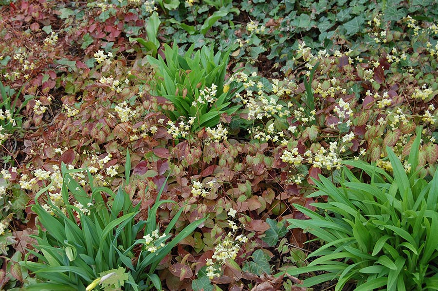Schon aus einiger Entfernung offenbart sich zudem ihr Zierwert als Spezialisten für den Halbschatten und Schatten: Bereits im Jahr nach der Pflanzung bilden die gelb- bis olivgrünen, oft rotgerandeten oder mit einem filigranen rötlichen Muster gezeichneten Blätter eine geschlossene Decke – je nach Art als rundlicher Blatthorst oder flächig wachsend. Dadurch ergeben sich viele Kombinationsmöglichkeiten mit anderen Schattenstauden wie Farnen, Gräsern, Salomonssiegel (Polygonatum), Kaukasusvergissmeinnicht (Brunnera), Sterndolde (Astrantia) oder der exotisch anmutenden Lilientraube (Liriope).