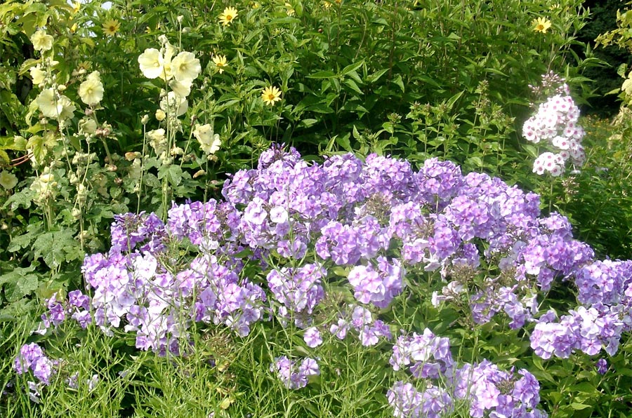 Wohlwissend, dass wir im niederschlagsarmen Erfurt keinen guten Phlox-Standort haben und die Sichtung von hohen Sommerphloxen generell als sehr schwierig gilt, begeistern mich diese sommerblühenden duftenden Stauden immer wieder. Wie heißt es so schön „Was man leicht uns gewährt, das erzeugt keine längere Liebe“ [1] und so habe ich mich mit Freude der Phlox-Sichtung in Erfurt gewidmet und den mit Sternen ausgezeichneten Sorten ist meine lange Liebe wohl gewiss. Dem folgend stimme ich auch Karl Foerster zu, dass „ein Garten ohne Phlox … mehr als bloßer Irrtum“ wäre, und der Verzicht dieser leuchtenden wirkungsvollen Blütendolden von Juli bis September eine „Versündigung gegen den Sommer“ sei. Besonders gut blühen die aus Nordamerika stammenden hohen Gartenphloxe in nicht so heißen / eher frischen Gegenden, im sonnigen bis halbschattigen Staudenbeet und zeigen sich dankbar für phosphorbetonte, organische Düngergaben wie Kompost oder Stallmist bei gleichmäßig feuchten, aber gut durchlässigen Böden. Tröpfchenbewässerung ist sehr zu empfehlen. Ein Rückschnitt vor der Blüte, im Mai, führt – wie übrigens bei vielen hohen Blütenstauden - zu stabileren und robusteren Pflanzen.